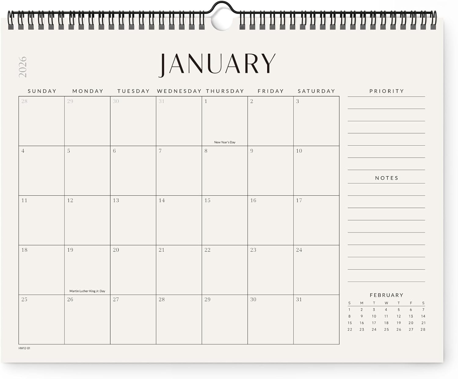 - PREMIUM PAPER & EASY TO USE: Printed on thick, premium paper to avoid ink through, this monthly calendar 2025-2026 provides a smooth writing surface. The sturdy twin-wire binding for easy page-turning