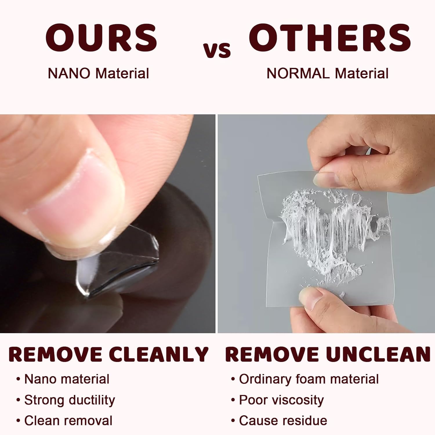 - 【Premium Nano Gel – Flexible, Transparent, Invisible】Made of premium soft nano gel, this nano double sided adhesive tape is stretchable yet strong, while remaining nearly invisible. It blends into surfaces like plastic, stone, glass, and fabric while maintaining dependable adhesion. Compared to typical double sided sticky putty or double sided mounting putty, this thin nano tape offers a cleaner, softer finish—ideal for minimalist designs and delicate applications.