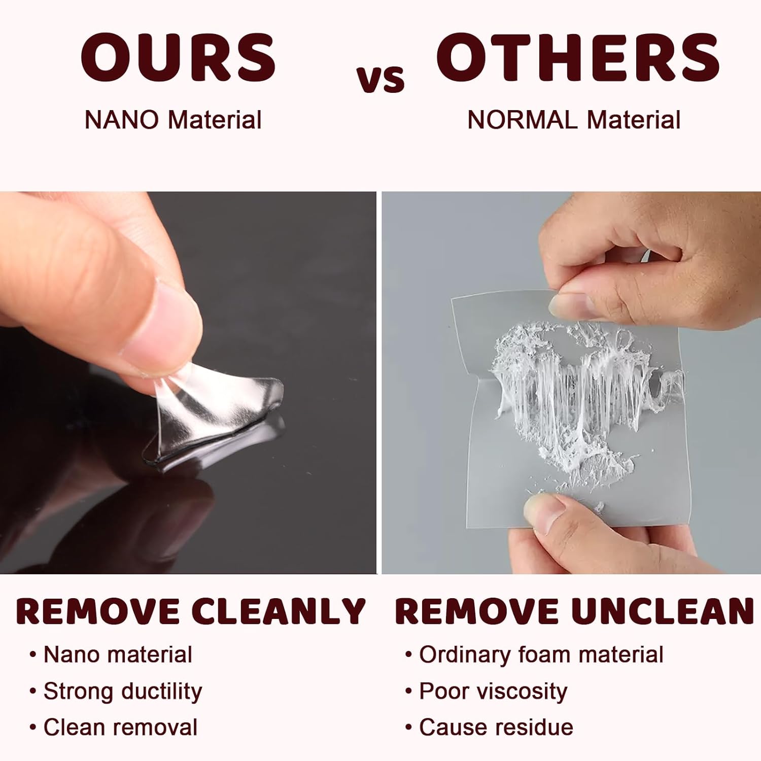- 【Premium Nano Gel – Flexible, Transparent, Invisible】Made of premium soft nano gel, this nano double sided adhesive tape is stretchable yet strong, while remaining nearly invisible. It blends into surfaces like plastic, stone, glass, and fabric while maintaining dependable adhesion. Compared to typical double sided sticky putty or double sided mounting putty, this thin nano tape offers a cleaner, softer finish—ideal for minimalist designs and delicate applications.