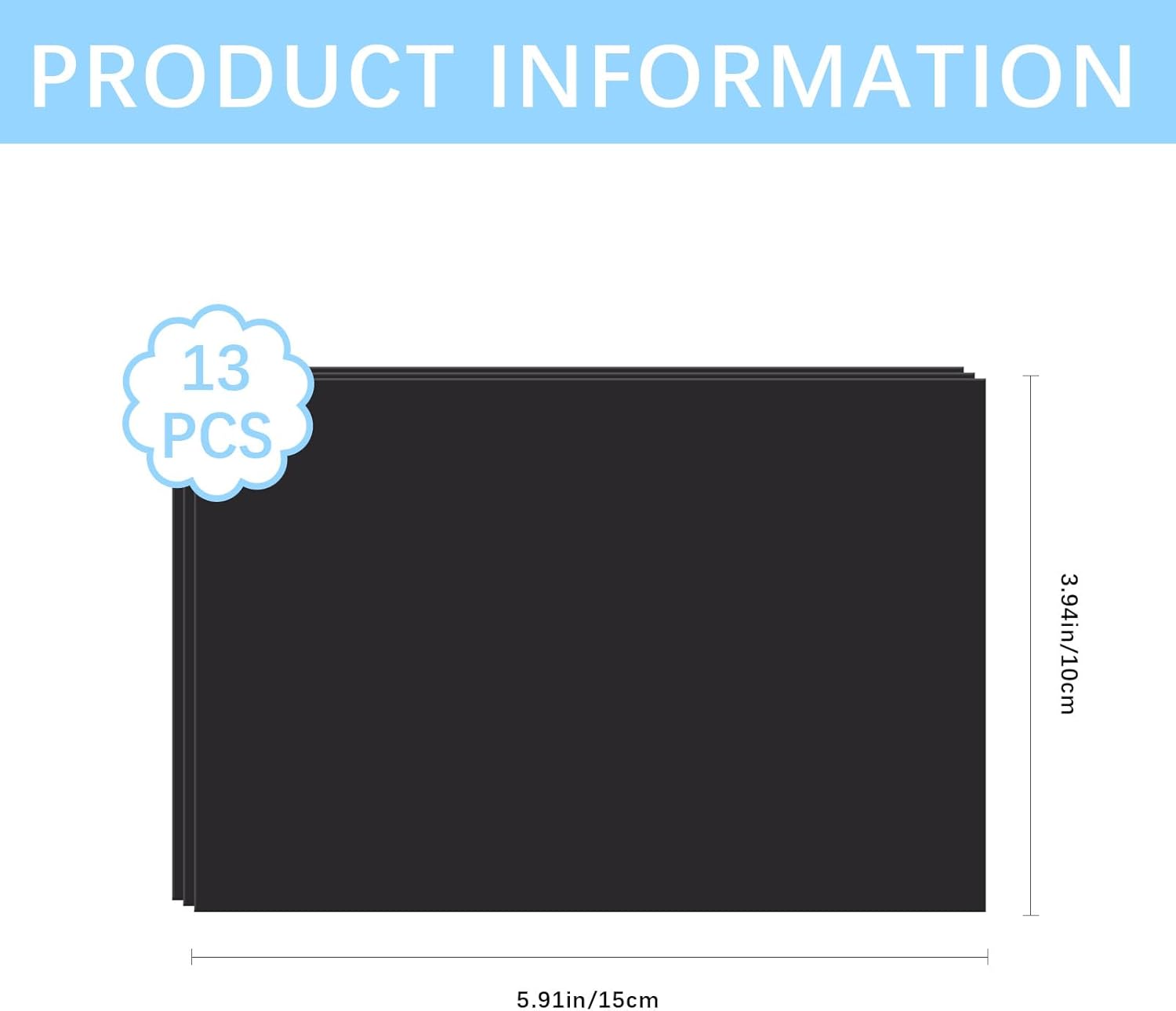 - You can got 13 magnetic sheets, each measuring 4x6 inches. This ideal size provides plenty of space to display your photos, artwork, or custom creations. Whether you’re organizing, decorating, or crafting, these sheets offer versatile options for all your needs