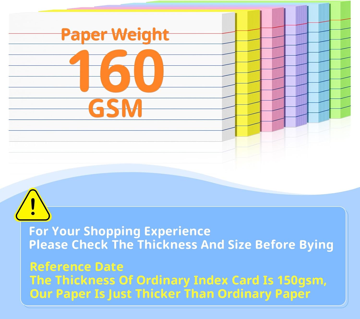 - 【Index Card features】High-quality 3x5 note cards are durable, each index card is made of 160gsm lightheavy index card. Suitable for a variety of pens, smooth for writing, no ink bleeding concerns, not easy to tear and break, can be used for a long time. But if you need it for making recipes or a thicker index card, please do not choose it.