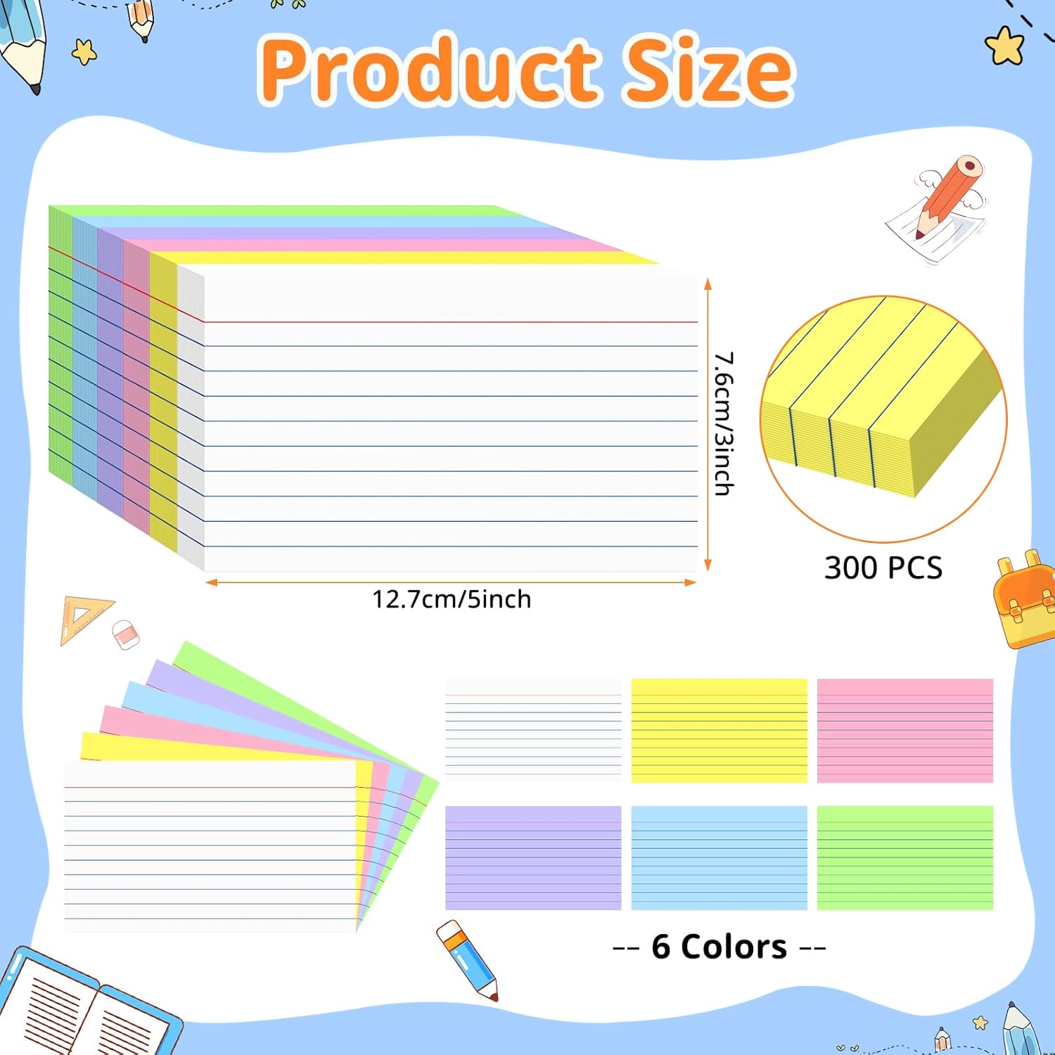- 【Package included】You will get 300PCS colored index cards, including 6 different colors, 50 pieces of each color. Adequate quantity and diverse colors to meet your daily study and work needs.