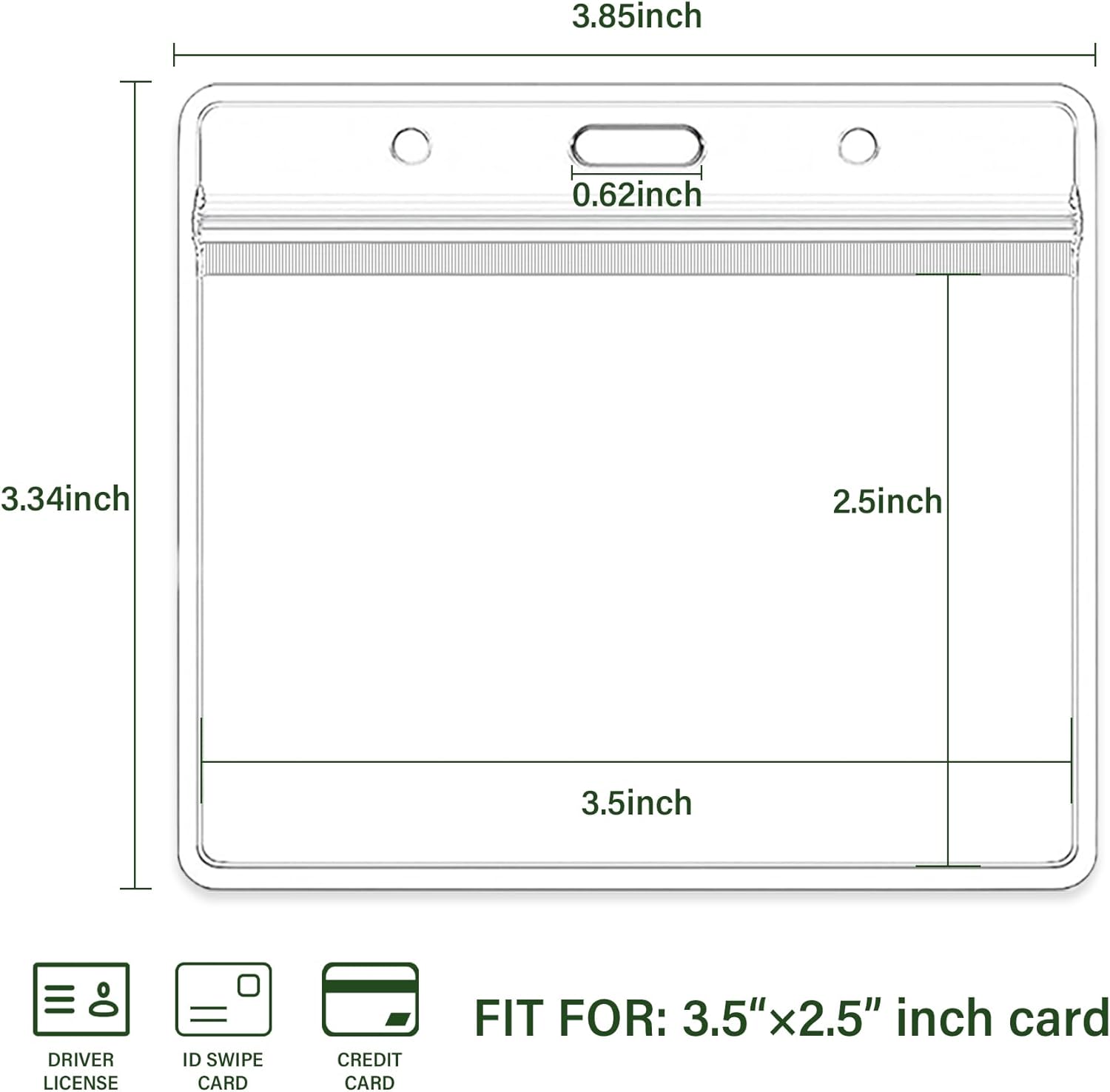 3.5x2.5 Inches Horizontal Badge Holder, Clear ID Card Holder with Waterproof Resealable Zip Type Protector, Badge Sleeve Fits Name Tag Holder/RFID/Proximity/Credit Card(Holders,50PCS)