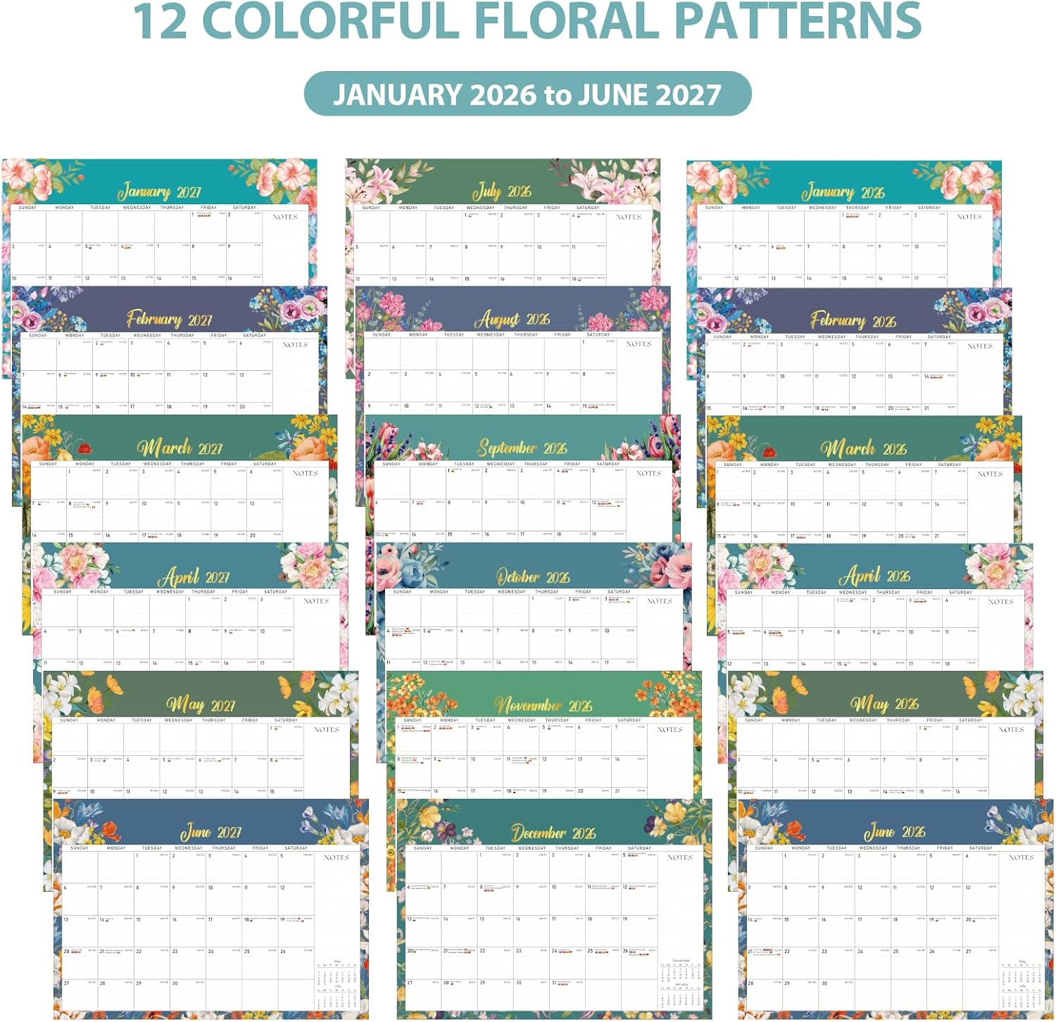 - [FUNCTIONAL & CUSTOMIZABLE] – This large 2026 calendar (17"x12") features 18 monthly calendar pages. Each page includes ruled daily blocks, a notes section, and a full-year overview. It also comes with 3 calendar sticker sheets for easy customization and organization.