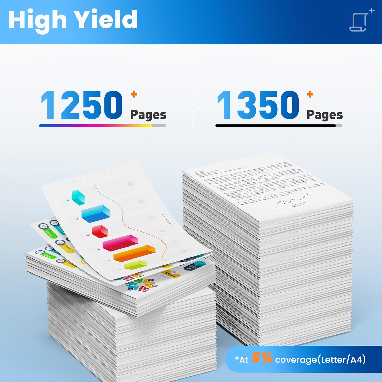 - 206A Toner Cartridges High Page Yield: High yield up to 1350 pages for 206A black toner cartridge and 1250 pages for 206A Cyan/Magenta/Yellow toner cartridge 5% coverage Letter/A4. Print documents or charts clearly and suitable for standard office/home printing.