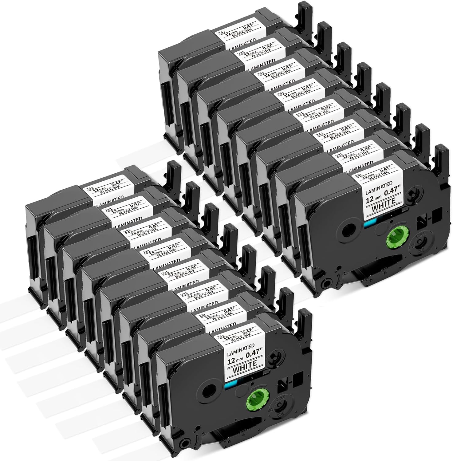 Airmall Tze 12mm 0.47 Laminated White Label Maker Tape Refill Compatible with Brother 12mm .47 Laminated White Tz Tape TZe-231 TZ-231 for PT-D200 D210 D220 H110 D410 P710BT 1750 1180 1880, 16-Pack