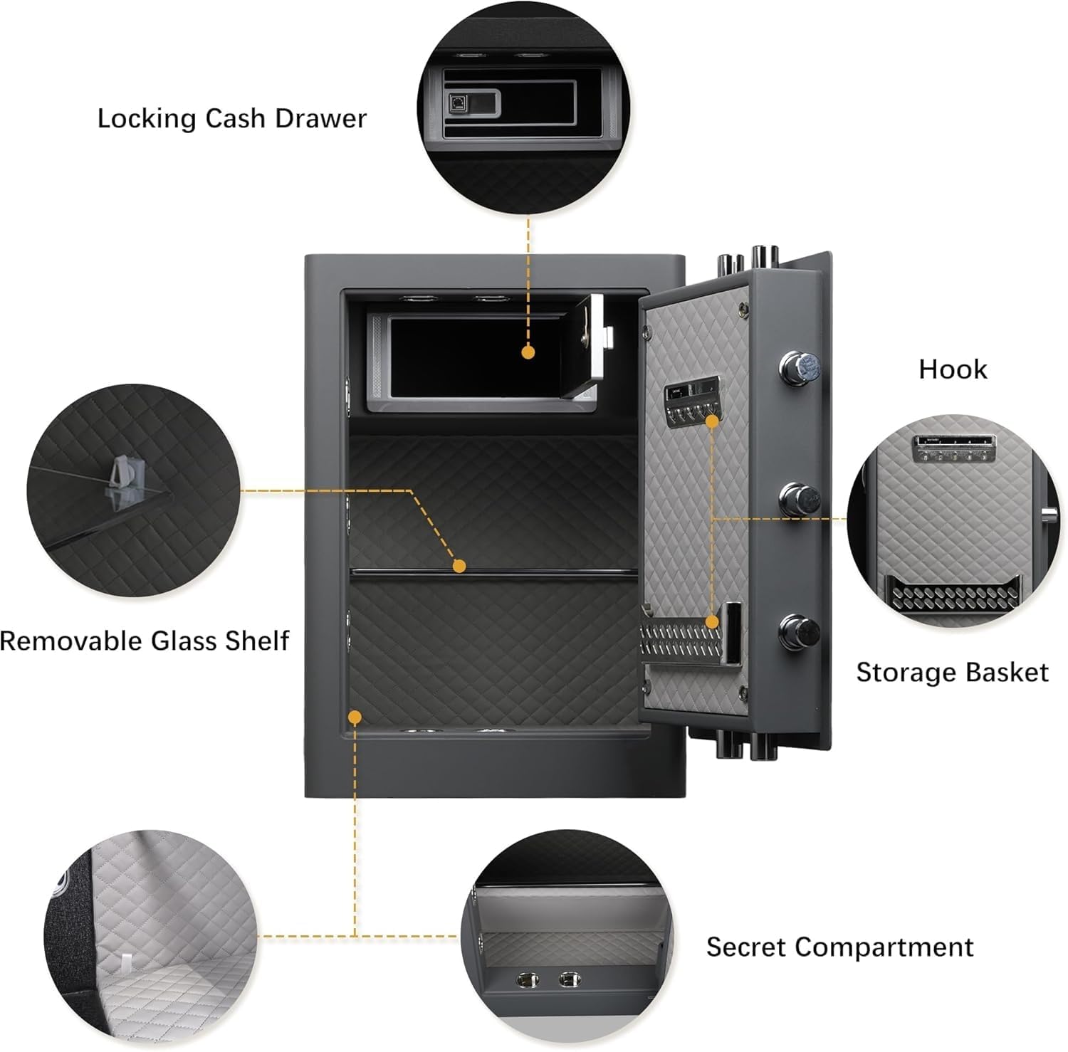 - Lock Type : Biometric, Electronic Combination Lock, Key