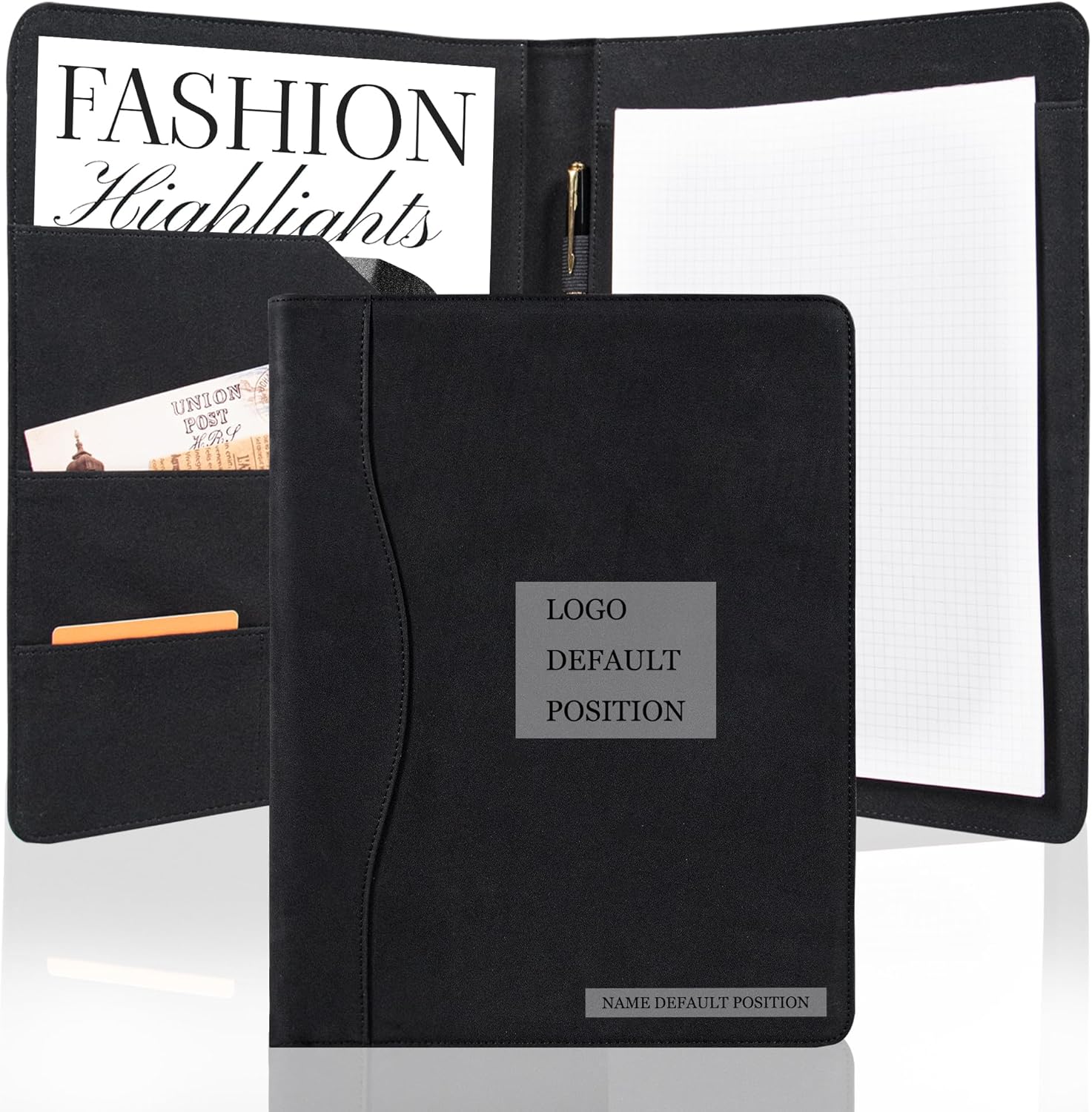 AZXCG Custom Padfolio Binder, Free Engraved Name,Leather Padfolio for Men and Women,Interview Resume Folder,Business Card Holder,Gift Portfolio